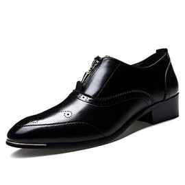Men's Shoes Leather Casual Oxfords Casual Low Heel Zipper Black